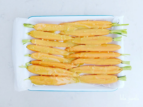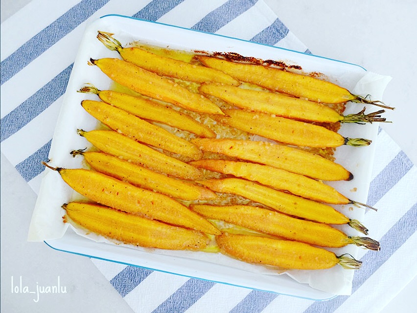 Las llevamos al horno y horneamos durante 30 minutos a una altura media-alta, transcurrido ese tiempo comprobamos si las zanahorias están hechas. Si no lo están horneamos 10 minutos más o hasta que tenga la textura que queramos. Los últimos 5 minutos las ponemos al grill para que se doren.