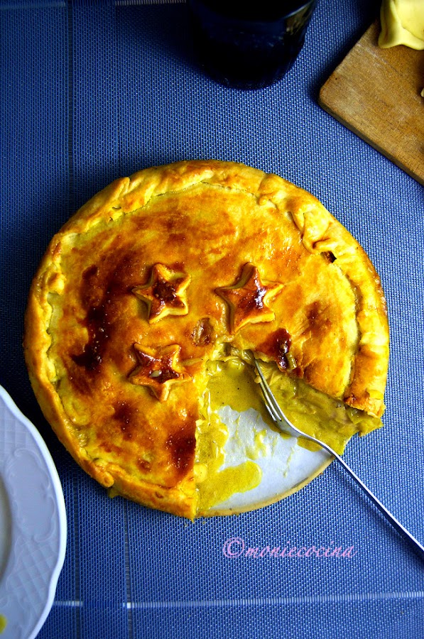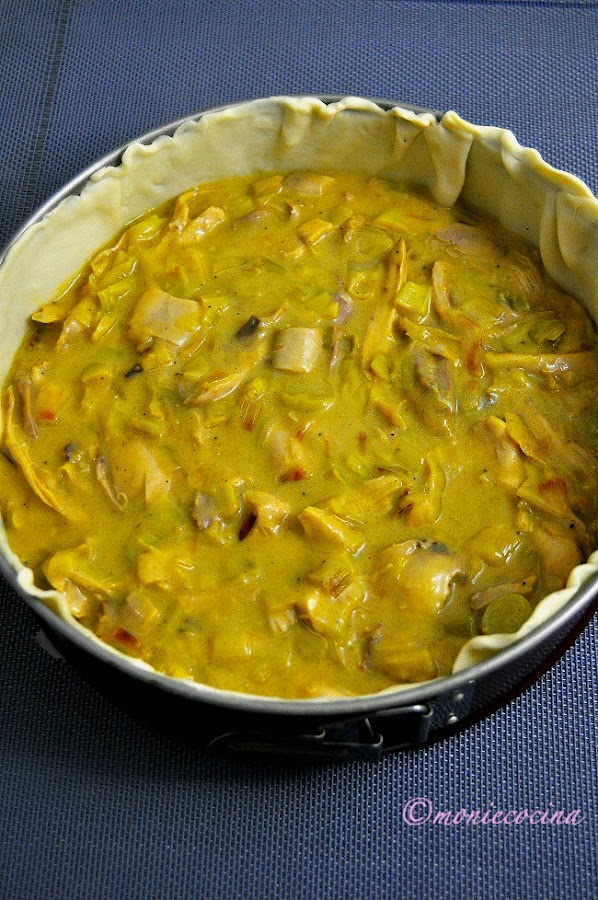 Tenía ganas de que mi cocina oliera a especias, y con lo que me gustan los típicos "pies" se me ocurrió preparar uno de pollo con Ras el hanout. Hoy en día es más fácil encontrar esta mezcla de especias, pero si no podéis conseguirla podéis usar curry, jengibre, cúrcuma, cayena, cardamomo y pimienta. Con estas especias conseguiréis un magnífico relleno de pollo para un pastel increíble.