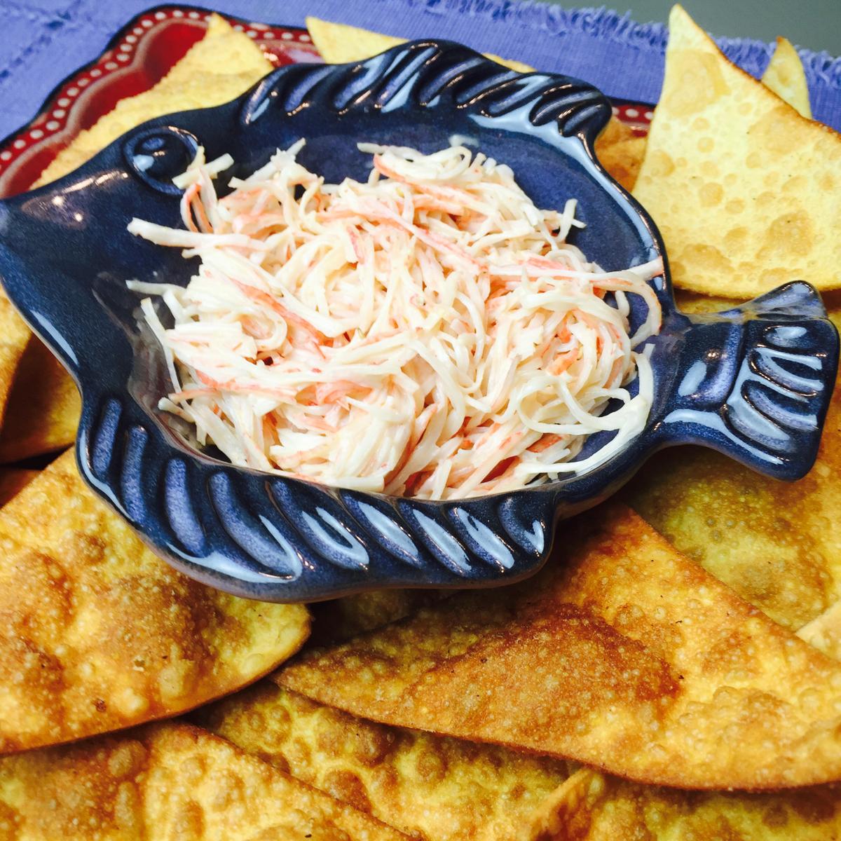 El Spicy Crab lo puedes servir con chips de wonton (venden las plantillas en el mercado oriental y las fríes en casa), sobre mini tostaditas, tostones o mi preferido, galletas de arroz. A todos les ha gustado mucho la combinación de este spicy crab con las galletas de arroz (rice crackers). Preferiblemente las que vienen en empaque azul y dicen “Plain”. ¡Bien yummy!!!