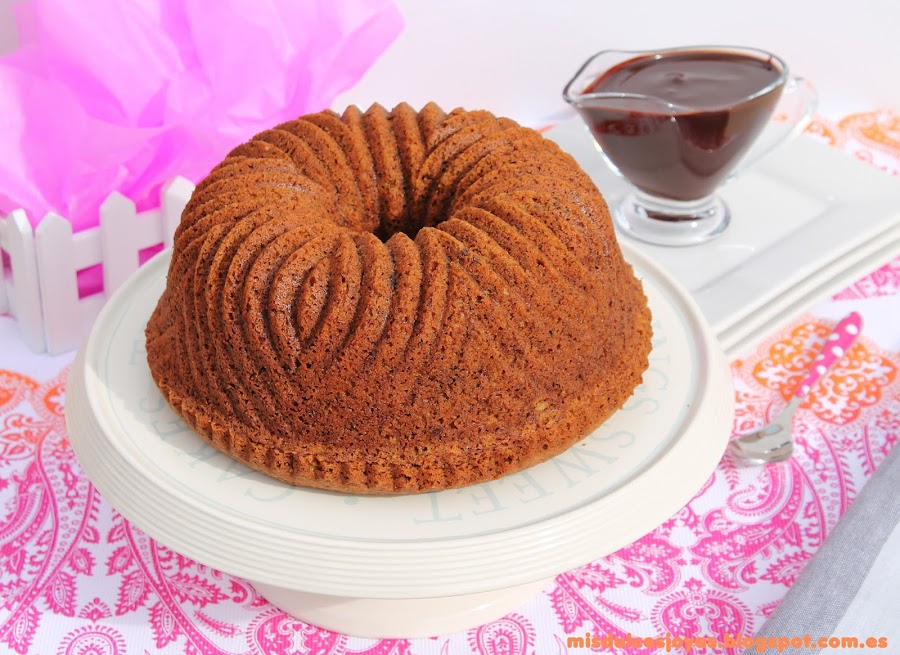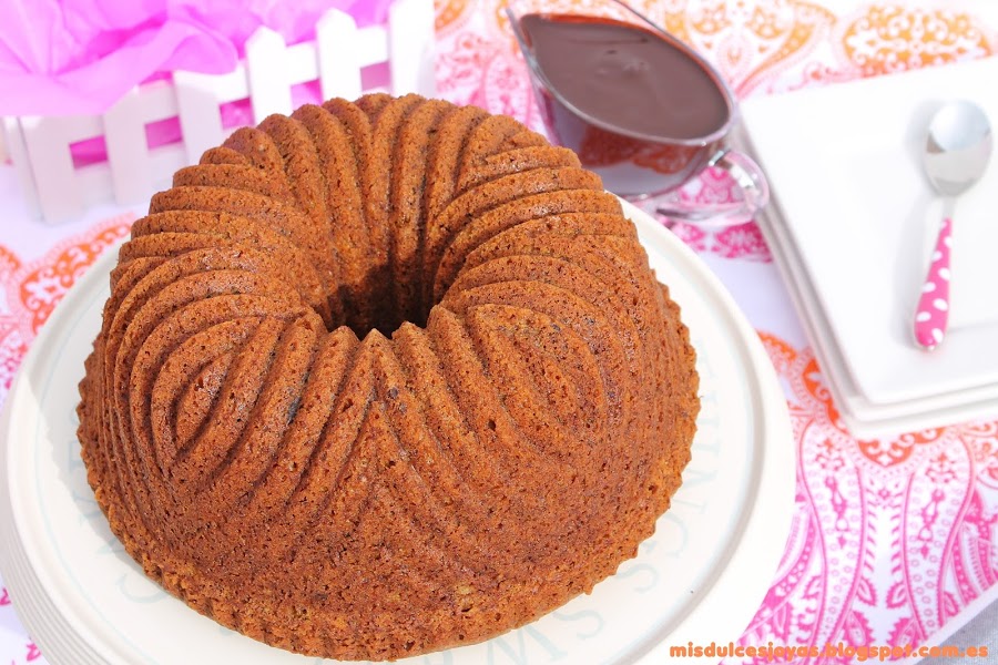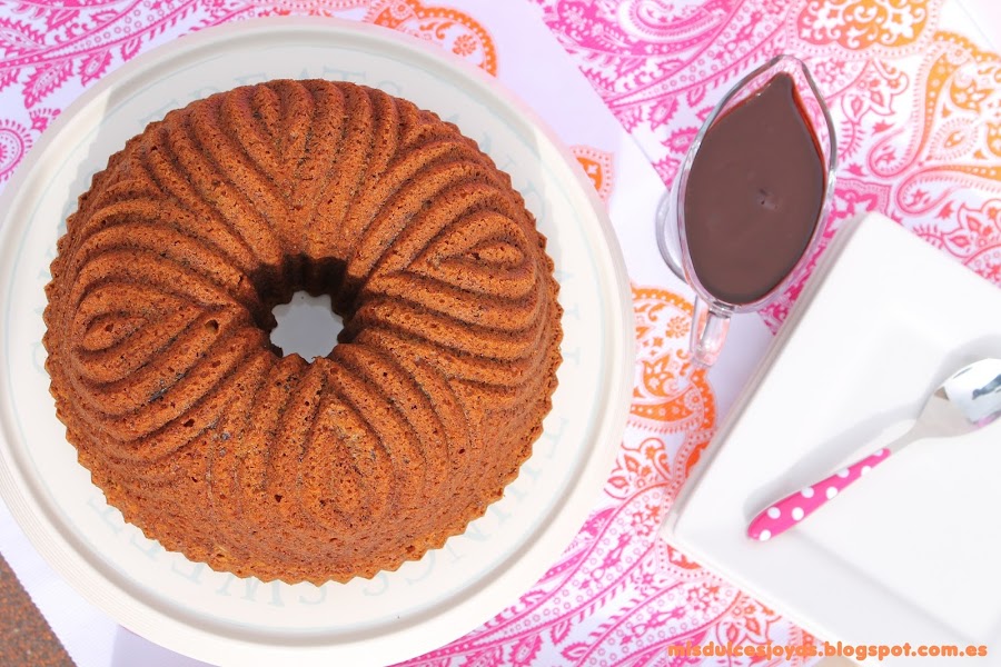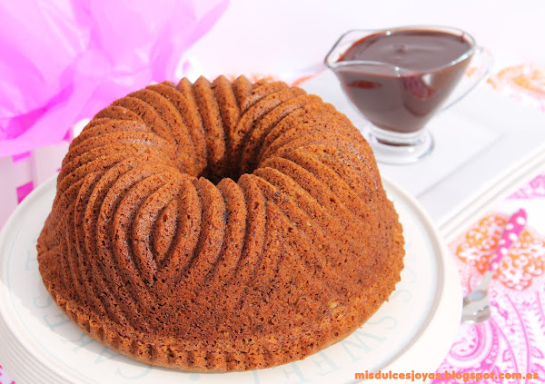 Este Bundt Cake se puede servir tal cual o con un glaseado de chocolate. El glaseado lo podemos esparcir por encima del Bundt Cake, o lo podemos servir en una salsera y que cada uno se vaya salseando o glaseando su trozo de pastel, a su gusto.