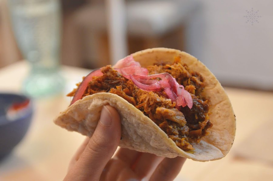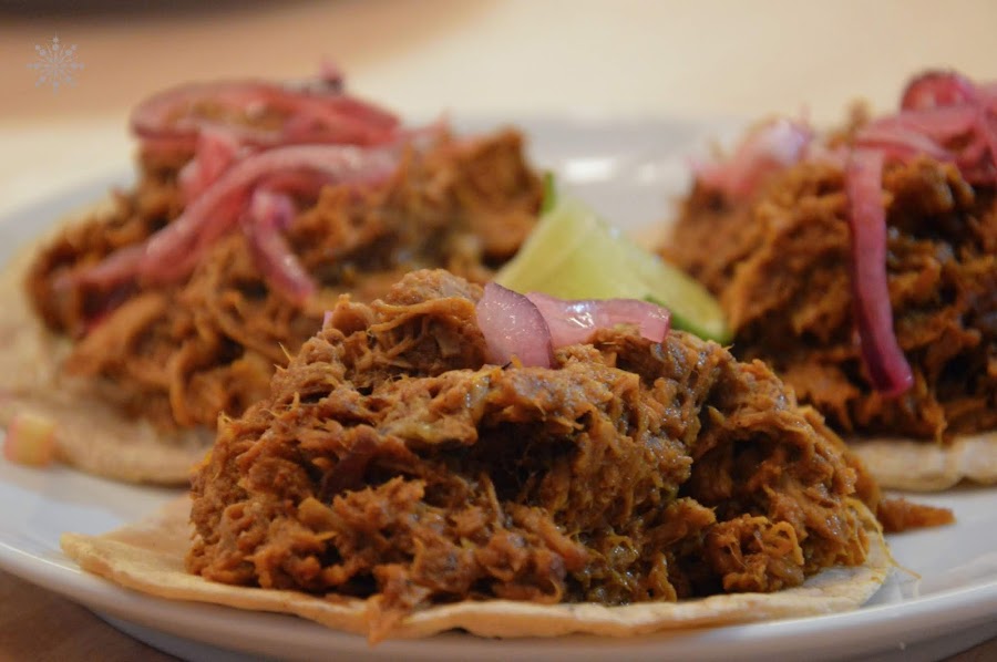 Después vinieron los tacos de cochinita pibil: como veis, no escatiman en cantidad; y es que como dicen los mexicanos, un taco no está bien relleno si se puede doblar la tortilla.