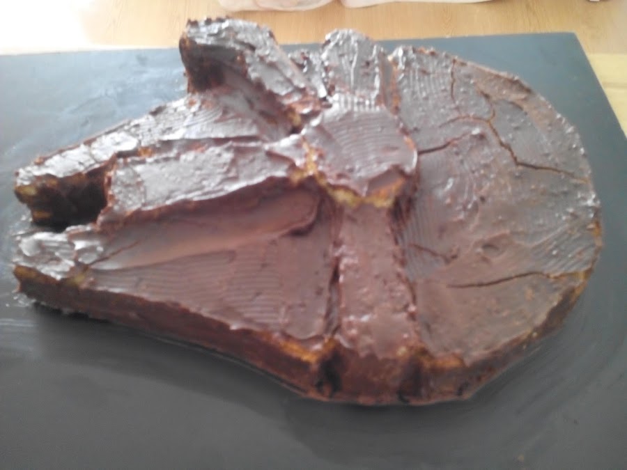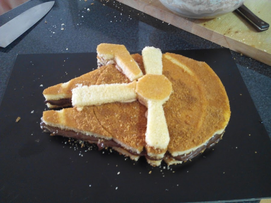 Hoy os enseño una tarta que hice ayer para el cumple de mi chico. Como buenos fans de Star Wars que somos se me ocurrió hacer la mítica nave de Han Solo, el Halcón Milenario.