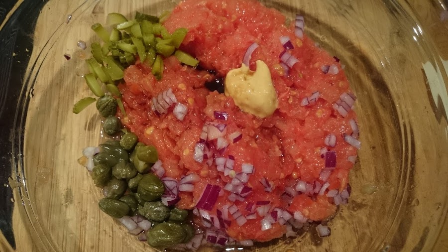 Hoy toca un remake en toda regla al gran chef Gonzalo DAmbrosio. Con motivo del concurso "Fácil y resultón" de Canal Cocina, me he lanzado a la odisea de homenajear uno de sus platos que captó mi atención desde el primer momento. Se trata de un "falso steak tartar" que sustituye la carne por tomate. La idea, ya de por sí, me pareció estimulante. Y el resultado aún más.