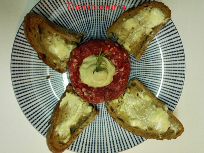 Si la carne la has comprado picada sáltate este paso, limpia la carne, corta en dados y congela durante una media hora, mientras por en el vaso los pepinillos, las alcaparras, el perejil y la cebolla y pica 4seg/vel5, si te gusta mas picado baja los restos con la espatula y repite 4seg/vel5, reserva y pon la carne en el vaso y pícala 5seg/vel8, añade todos los ingredientes menos la mostaza y mezcla 10seg/vel3.