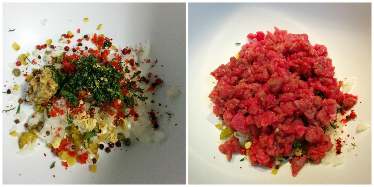 Digamos que, a efectos prácticos, esta es una receta francesa, pues fueron ellos los que la situaron en las mesas de los más prestigiosos restaurantes del mundo. Con el tiempo, su presencia se fue diluyendo hasta casi desaparecer, hasta el punto de que en Madrid era difícil de encontrar, salvo en los restaurantes en los que siempre fue parte importante de la carta y estos tenían que ver con hoteles o eran clásicos establecimientos que no cambiaban su carta. Vamos, que casi se convierte en comida viejuna, pero, cual ave fénix de los cuchillos, ha vuelto y con mucha fuerza. Curiosamente con la misma que ha aparecido el fenómeno de la hamburguesa gourmet hasta el punto de que parece no haber restaurante que se precie que no ofrezca a sus comensales esta receta en sus cartas. En algunos casos, incluso, servido "a la rusa", delante del cliente.