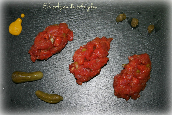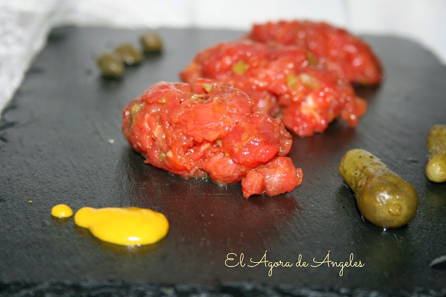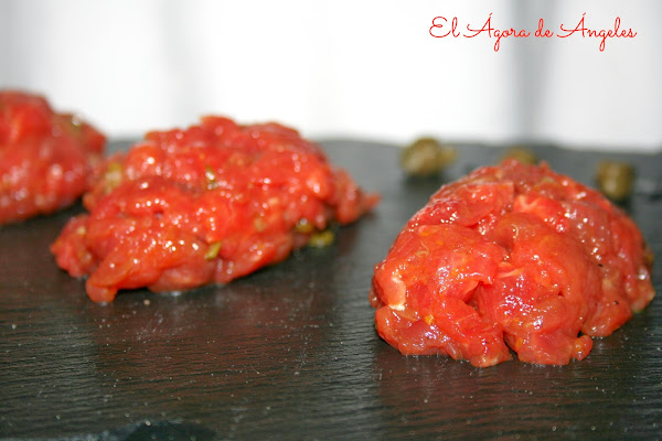 Una receta para el Jose de la casa y para su hija.Yo paso ,aunque no me queda más remedio que probarlo si lo quiero publicar.La cata se queda en bien de sabor pero no puedo con la textura de la carne cruda.