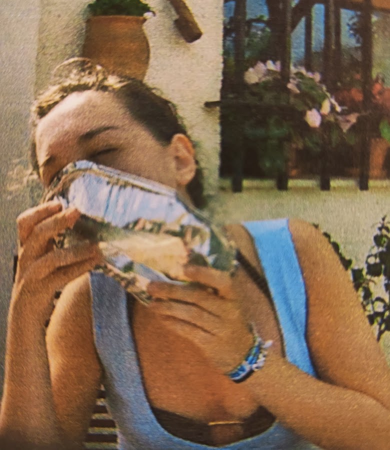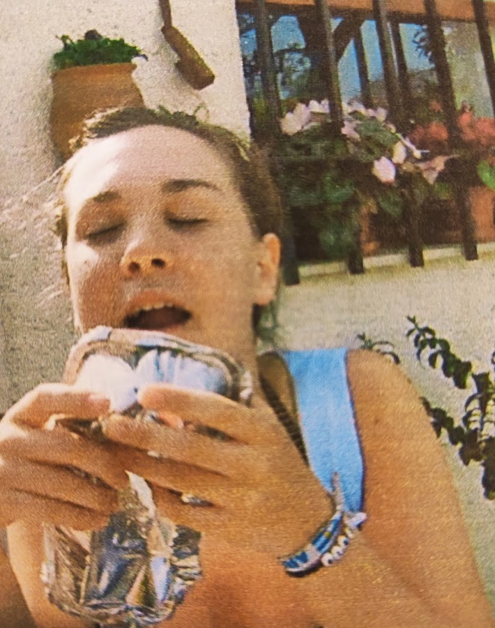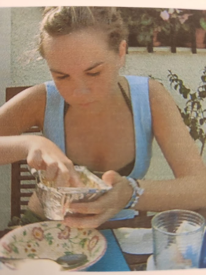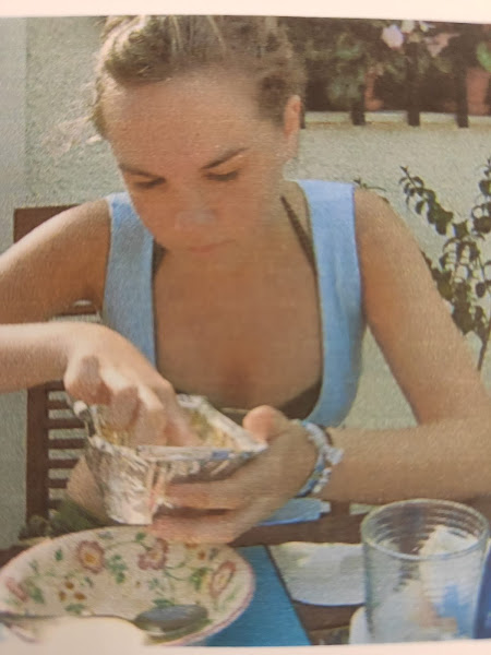 Las siguientes imágenes corresponden al pasado. No podría decir la fecha exacta pero 2004, 2005 fue en nuestra antigua casa en Valencia y mi hija pequeña no puede expresar mejor el agrado al probar este pastel. A día de hoy la sigue gustando.