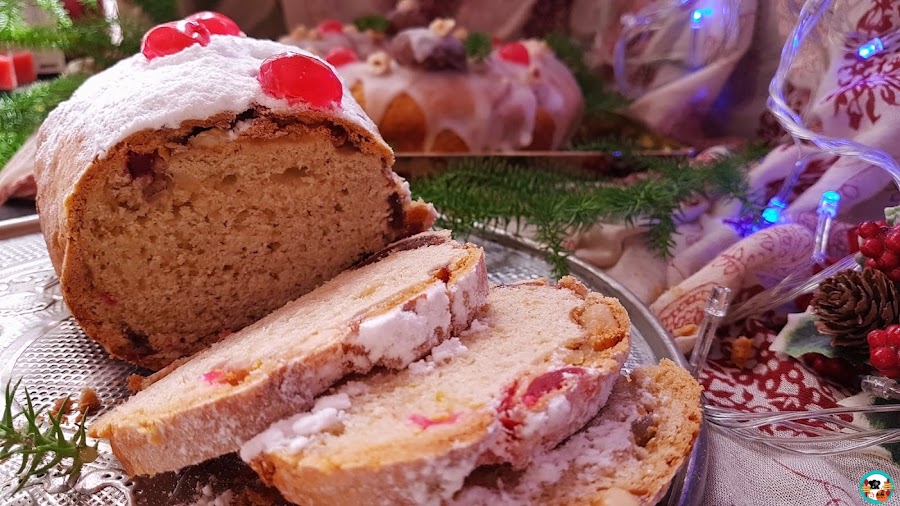 Stollen de frutas glaseado o pan alemán de navidad. Una receta con denominación de origen desde 1997, en la ciudad de Dresden.