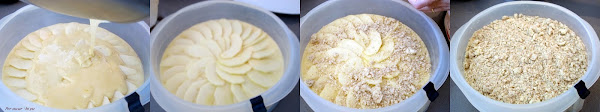 Cubrir con el resto de la masa y colocar una segunda capa de manzana. Espolvorear por encima el streusel repartiéndolo por toda la superficie.