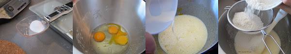 Añadir poco a poco la harina tamizada mezclar con una espátula y movimientos envolventes para que no se nos desinfle la mezcla. Por último incorporar la mantequilla poco a poco e integrar en la masa.