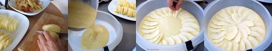 Verter en el molde elegido la mitad de la masa y nivelarla. Colocar una capa de manzana sobre ella.