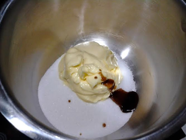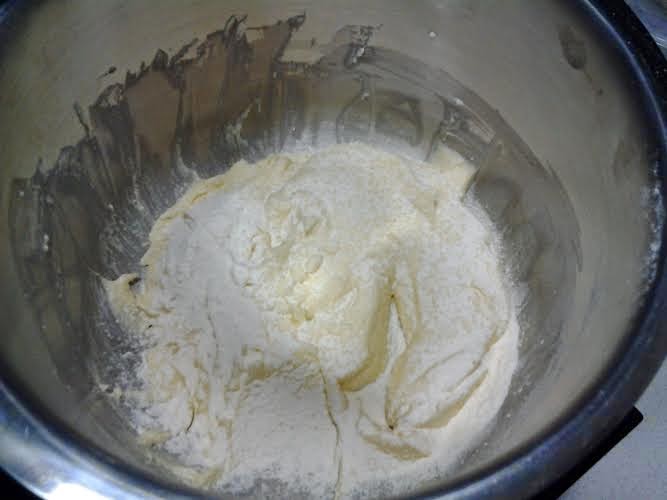 Mientras se enfría y coge consistencia nuestro relleno, prepararemos la base y el streusel (grumos). Mezclamos la harina con la sal y reservamos. Por otro lado, batimos la mantequilla con el azúcar y la vainilla hasta que formen una crema.
