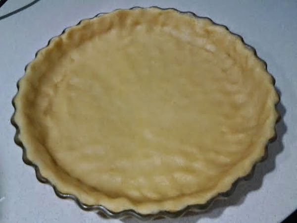 Reservamos 1/3 de esa masa en la nevera y el resto lo estiramos y disponemos sobre nuestro molde. Horneamos a 180º durante 20 minutos.