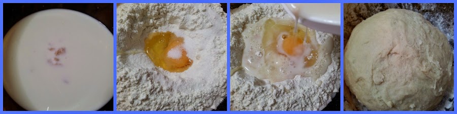 En un bol, diluimos la levadura fresca, en leche y un poco de azúcar. En otro bol más grande formamos un volcán con la harina y vamos incorporando el huevo, el azúcar y la leche, donde hemos disuelto la levadura. Iremos mezclando con las manos, hasta obtener una masa homogenea, si se pega mucho en los dedos echar un poco de harina en las manos y dar forma de bola a la masa, la dejaremos en el mismo bol, cubriéndola con un paño seco y dejaremos fermentar hasta que doble su volumen, dependerá mucho de la temperatura ambiente, si hace calor elevara antes.