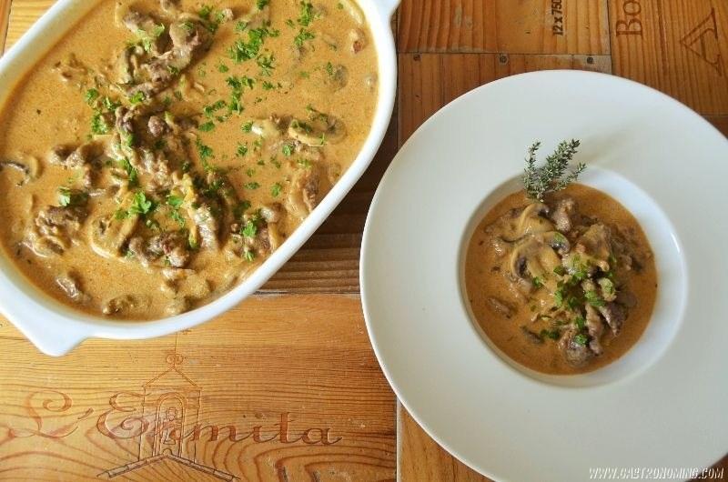 Un clásico de clásicos, un Stroganoff, uno más que amplía nuestro recetario no solo la sección de “clásicos” si no también de las recetas más internacionales, esta vez la receta proviene desde la “madre Rusia” una receta verdaderamente internacional que nace hace ya muchos años desde que en el siglo XVIII antes de la revolución rusa, bueno, antes de una de tantas revoluciones, cuando las clases acomodadas rusas adoraban el estilo de vida francés debido a que creían que su forma de vida era la personificación de estilo y glamour, los rusos por esas fechas, consumían mucho Francia, como el champagne, pero sobre todo les gustaba su gastronomía, así que muchas de estas familias enviaban a sus trabajadores domésticos, entiéndase cocineros, a estudiar cocina a Francia. Una de estas acaudaladas familias era la del general y conde Pável Aleksándrovich Stróganov quien envía a uno de sus cocineros a curtirse ente fogones galos, a su vuelta, Pável probó un plato que quizás era la base o el mismo plato tal cual preparado por este cocinero y le gustó tanto que decidió presentarlo a un concurso de cocina en San Petesburgo y así es como fue atribuido a la familia Stroganov, era la carne preparada al estilo de la familia Stroganov, con el tiempo y las modificaciones que sufrió no solo la receta propiamente dicha si no también el nombre, ya que podrás encontrar esta receta como Strogonoff, con “o” o con “a”, acabado en “ff” o en “v”, cualquiera de las formas es aceptada, eso sí, al decir Stroganoff u Strogonoff, nos estamos refiriendo al guiso intrínsecamente hecho con carne de vacuno en cuestión, por que así concibieron la receta desde un principio, con los años la gente fue preparándola con los ingredientes que tenía o prefería, creando así otras variantes como pollo stroganoff, cerdo stroganoff… o lo que se te ocurra stroganoff, por esto, si decimos solo stroganoff entendemos que es de carne, no hace falta decir que estás usando carne vacuna a no ser que quieras especificar que corte de carne estás usando, es decir, solomillo stroganoff por ejemplo, aunque de cualquier manera es aceptable, solo no olvides especificarlo si usas carne de otro