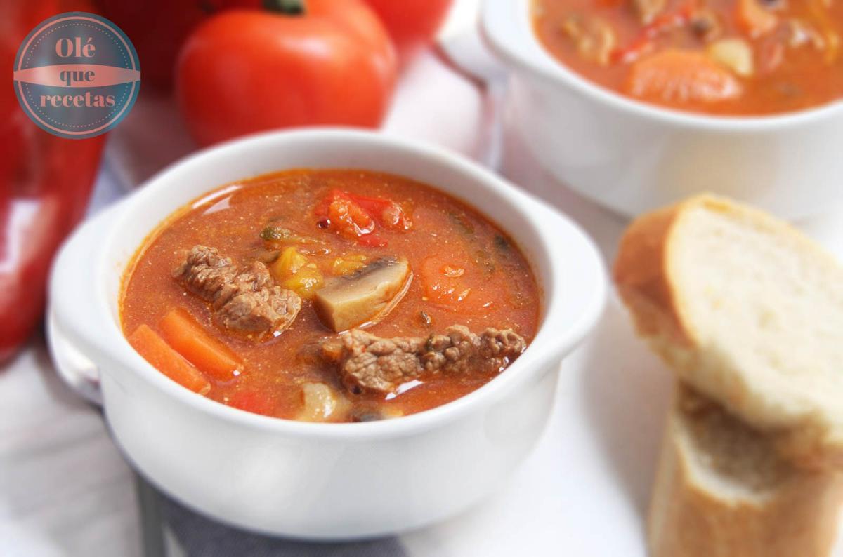 El strogonoff de ternera es un plato parecido al estofado de carne. Nosotros lo preparamos más liquido y por eso sale más parecido a una sopa. Contiene pimiento rojo y amarillo y además de pimentón dulce. Nosotros lo preparamos con pepinos encurtidos (ácidos) que añaden un toque especial a éste plato. Pero es un ingrediente opcional que en receta original no aparece. Si alguno de vosotros le gustaría preparar strogonoff de ternera con pepinos encurtidos, les dejamos una receta de “Allrecipes México”. Nosotros compramos estos pepinos en una tienda polaca en Madrid (en polaco se llaman “ogórki kiszone”) pero podéis prepararlos fácilmente en casa. Sólo vais a necesitar: eneldo fresco, ajo, sal, pepinos pequeños, agua. Debajo, en la receta dicen que podéis comerlos después de 3 días pero si los dejáis más tiempo, salen más ácidos y para nuestra receta vais a necesitar los pepinos muy ácidos.