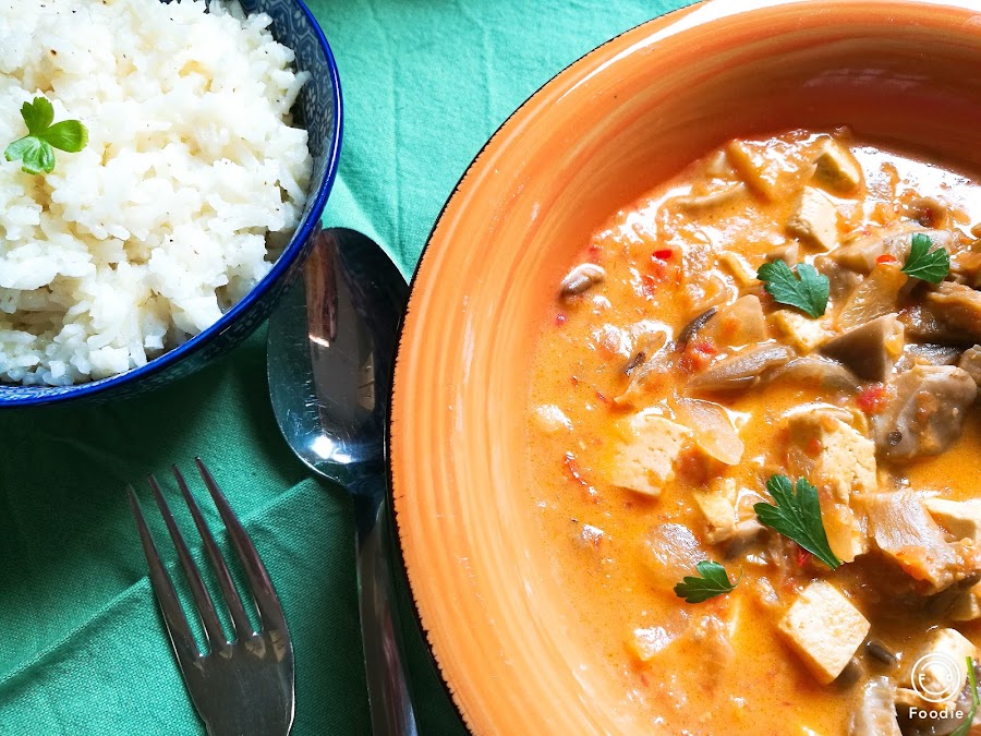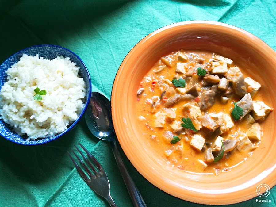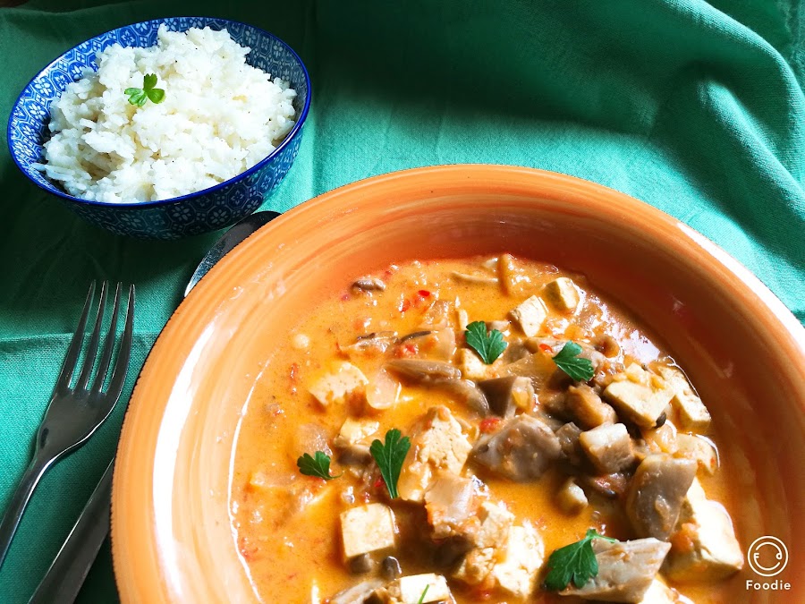 - Añadimos el tofu cortado a daditos y lo sofreímos. Añadimos el curry