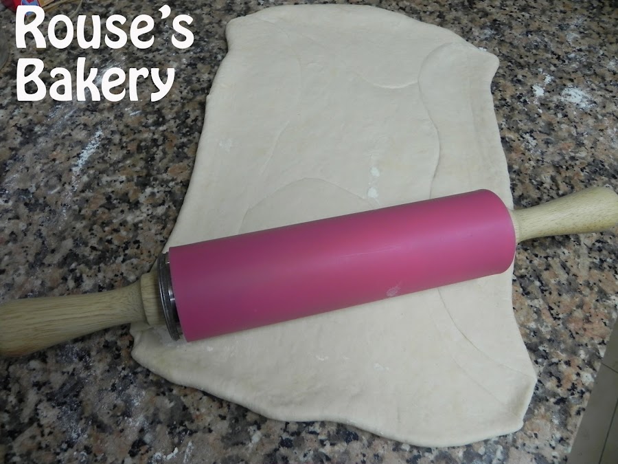 Extendemos la masa con un rodillo, formando un rectángulo de unos 40x25 cm y de un centímetro de grosor.