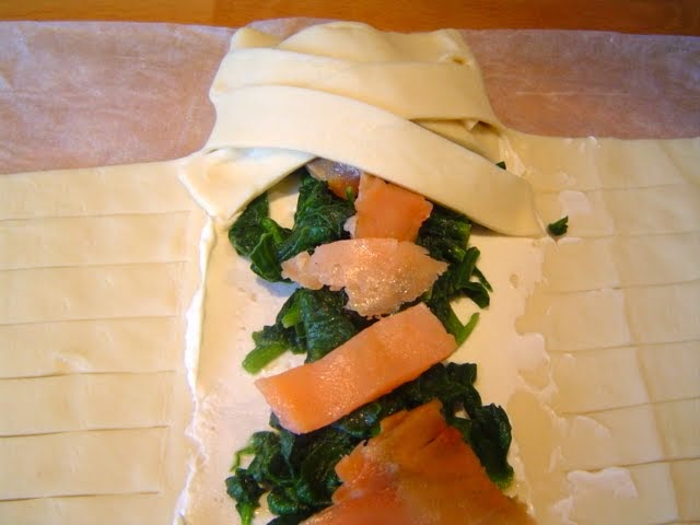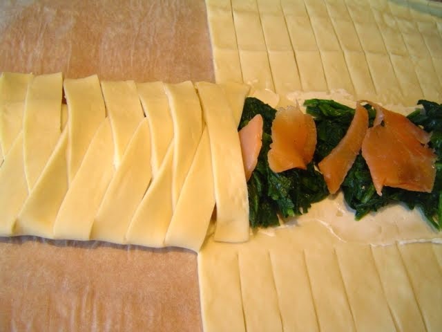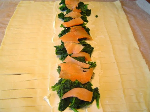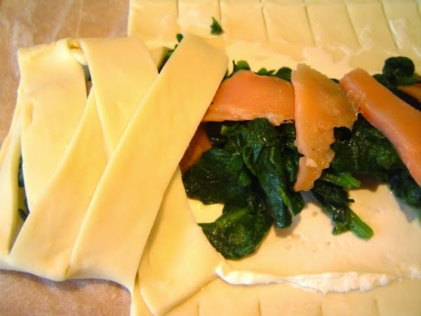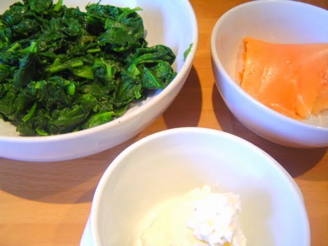 del queso crema, espinaca y salmón.