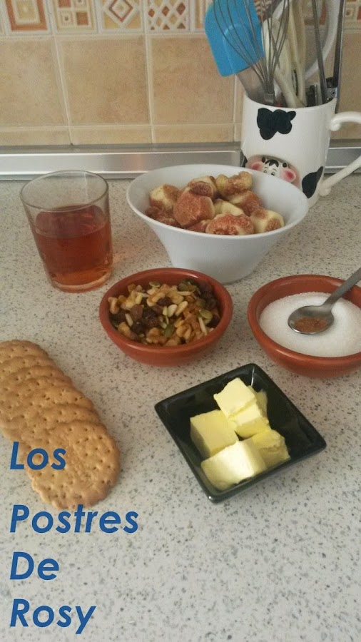 - Ponemos lo higos en el borde (en el más estrecho) y cubrimos con los frutos secos bien escurridos.