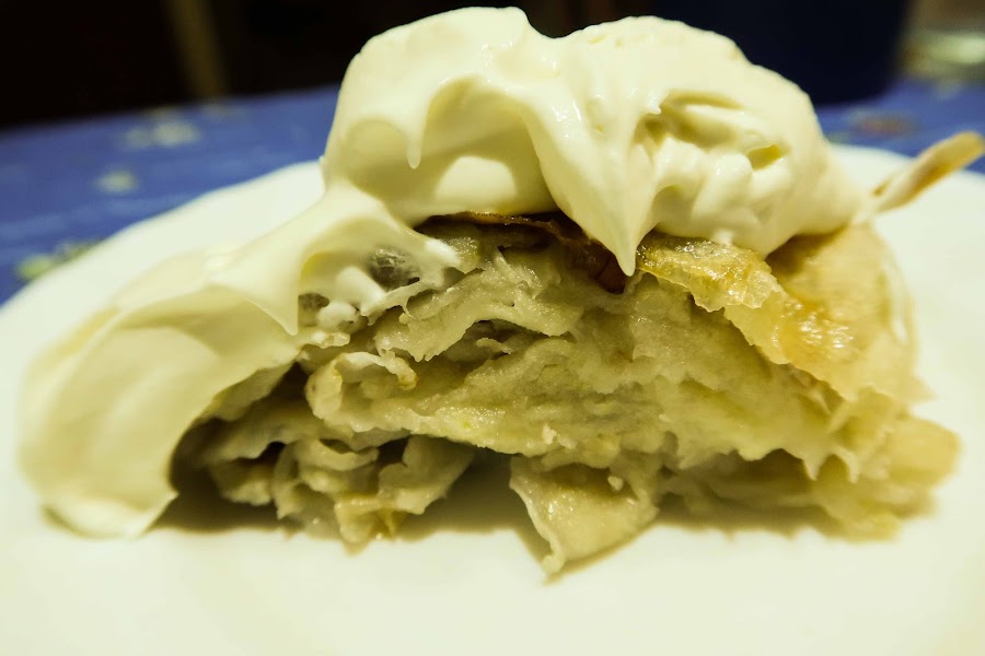 Estirar la masa del strudel, sobre un mantel.