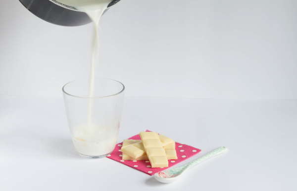 Es tan sencillo como poner en el fondo de un vaso unas cuantas onzas de chocolate blanco troceadas y añadirle leche hirviendo por encima ¡Listo!