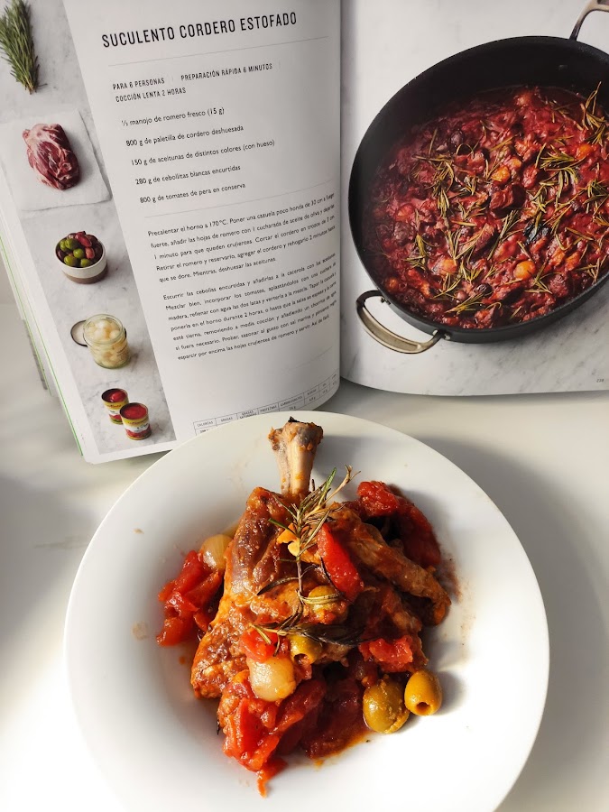 Retiramos el romero y lo reservamos, agregamos el cordero y lo rehogamos 2 minutos hasta que se dore.