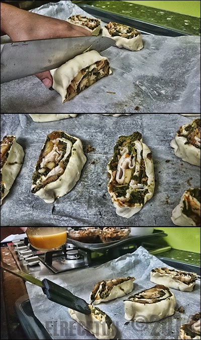 Los ponemos encima de la bandeja y los pintamos con huevo, y al horno 180º durante 30 minutos.