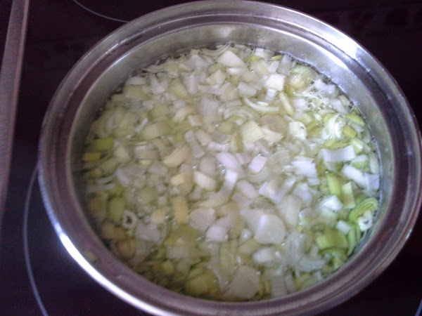 En un cazo con abundante agua y un poquito de sal, hervimos el puerro lavado y cortado finamente durante dos minutos. Escurrimos.