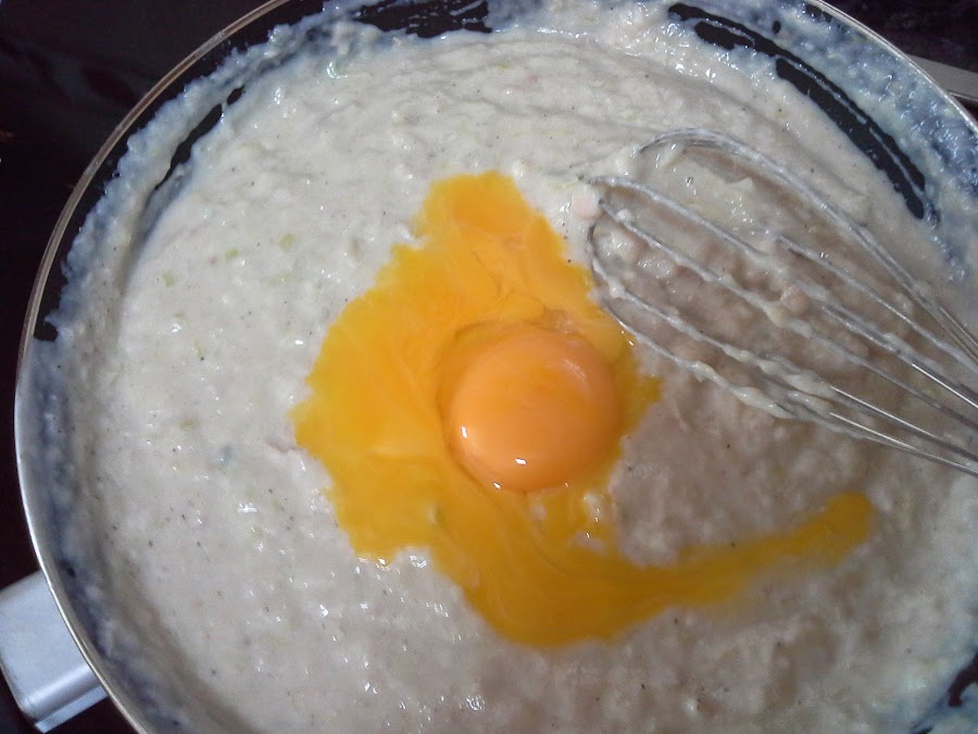 Añadimos las dos yemas de huevo y removemos bien.