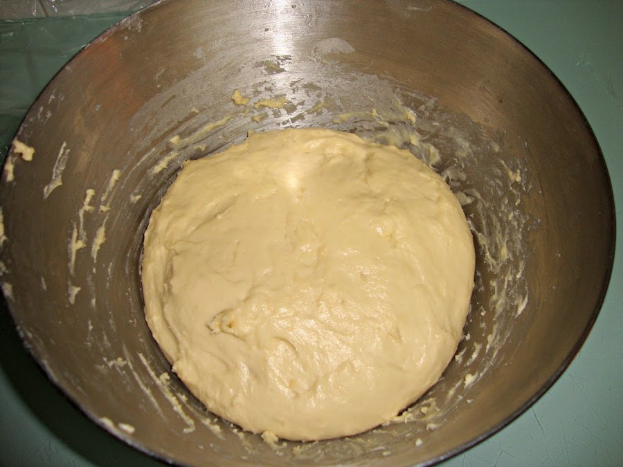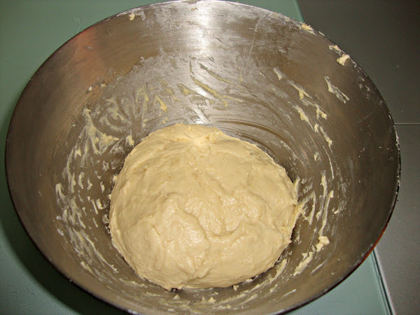 y vamos amasando poco a poco mientras añadimos de vez en cuando un trocito de mantequilla, amasamos durante unos 15 minutos hasta que veamos que la masa es homogénea y todos los ingredientes están húmedos.