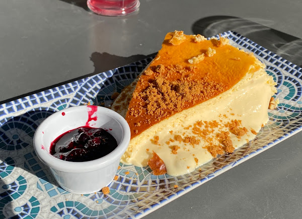 Por último, probamos la tarta de queso cremosa por recomendación del camarero que nos atendió (y porque nos fijamos también que todas las mesas lo pedían) y fue todo un acierto. Tiene la base de galleta y el interior muy cremoso, casi líquido, que nos encantó, es puro vicio. También nos gustó el detalle de que pusieron la mermelada de frutos rojos aparte, para que así te lo puedas echar si quieres o comerla sola si te gusta más así (como es mi caso).
