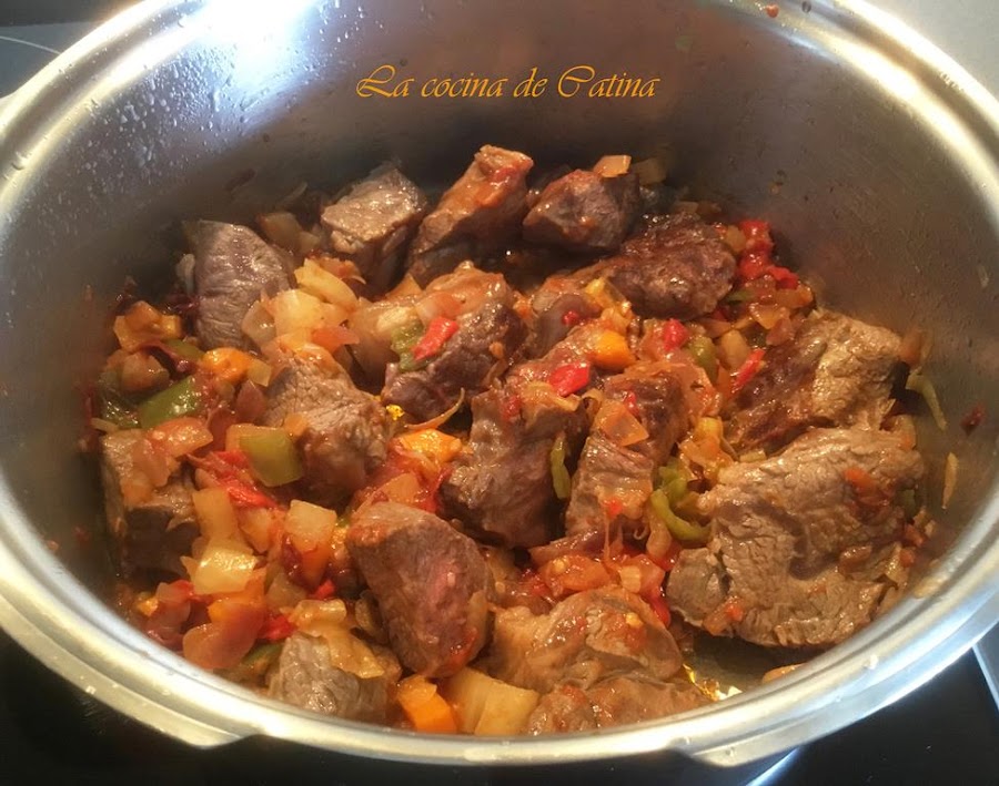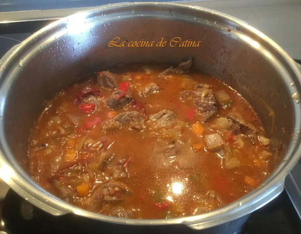 Si cocemos en olla pronto yo le he dado 30 minutos, si cocemos en olla normal, mantenemos hasta que la carne esté tierna (una hora o hora y media).