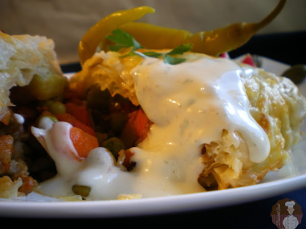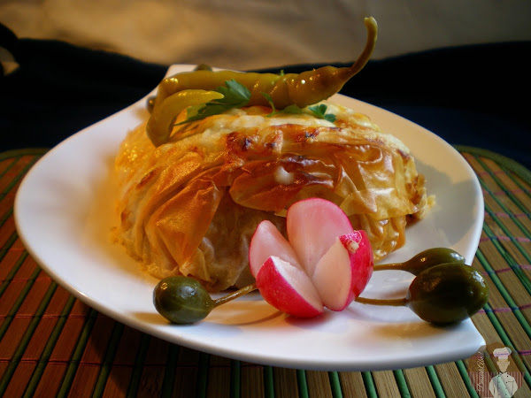 No he conseguido encontrar en la red ni en el libro antes citado, referencia alguna a la historia de esta receta, (a pesar de ser un plato muy apreciado en toda Turquía) pero si os puedo decir que el Sultan kebabı es una versión del famoso kebab bastante original en su presentación y muy, muy delicioso, uno de esos platos con los que se disfruta en la cocina, echando un buen rato mientras la casa se va impregnando de aromas que te van abriendo el apetito y presagian un buen disfrute en la mesa. Formado por un relleno de carne picada especiada al estilo kebab, un sofrito de verduras variadas, berenjena salteada y unos tropezones de patatas fritas que se envuelve por capas en unas láminas de pasta filo y sobre la que se añade una vez cerrada, una bechamel y queso antes de llevarla al horno: realmente, no te lo querrás perder y si de verdad te quieres sentir como un verdadero sultán, puedes recurrir como hacían ellos y antes que ellos lo emperadores romanos, a un Çaşnigirbaşı (catador del sabor) antes de probarlo tú.
