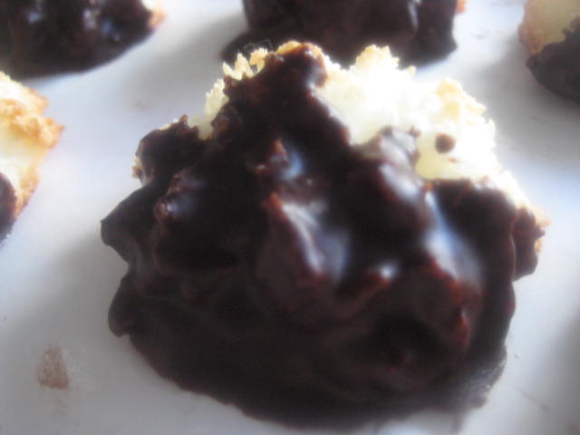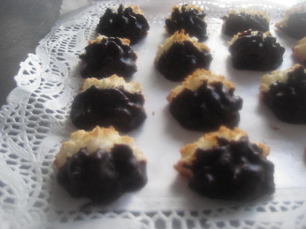 Preparación: Poner en un bol el coco rallado, el azúcar y el huevo y mezclar bien. Si se quiere potenciar un poco el sabor poner 8 gotas de aroma de coco. Seguidamente poner la masa obtenida en manga pastelera con boquilla rizada gruesa y escudillar porciones en forma de roseta sobre una bandeja de horno forrada con papel. Cocer a 190º C durante unos 15 minutos Retirar del horno y dejar enfriar sobre rejilla. Mientras tanto fundir la cobertura negra con la mantequilla y la nata (crema de leche). Lo podemos hacer en el microondas o sobre el fuego con o sin baño María. Una vez fundido, mezclar muy bien y esperar a tener una temperatura templadita. Entonces y, ya con las sultanas frías, bañar hsta la mitad en este glaseado. Dejar que se solidifiquen y listas para comenzar a comerlas.