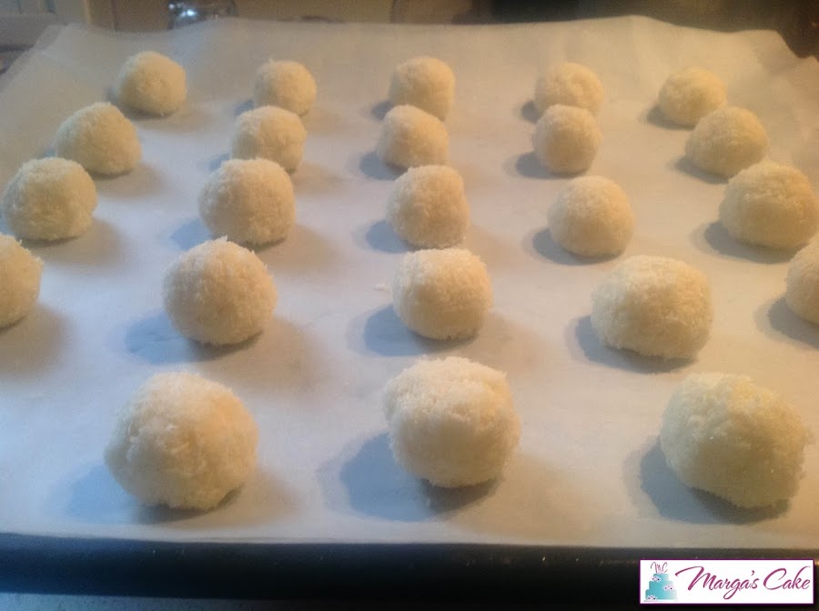 Luego iremos tomando porciones con una cucharada de sopa y formaremos bolas presionando para coger la bola ya compacta. Las iremos pasando a una bandeja de horno a la que habremos puesto un papel vegetal.