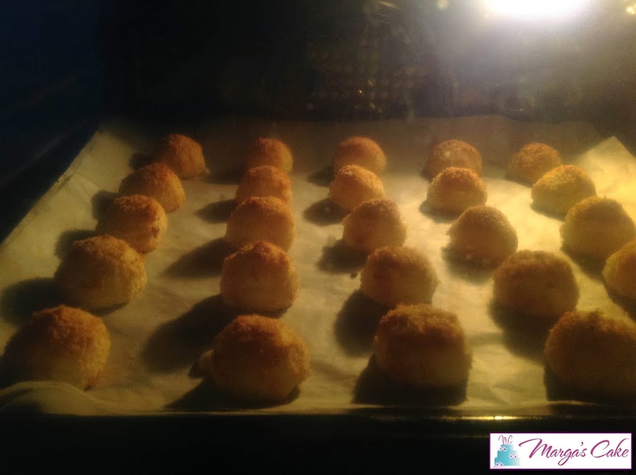 Precalentamos el horno a 200 ºC 10 minutos. Cuando tengamos toda la bandeja llena la metemos al horno unos 5 a 10 minutos o cuando cojan un precioso color dorado tal como se ve en la imagen.