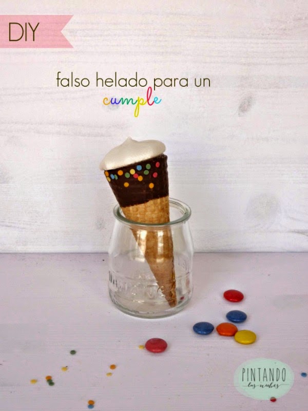 Olga tiene un blog precioso Pintando las Nubes , no sólo nos invita cada domingo a desayunar , sino que comparte un montón de ideas geniales como estos Falsos Helados .Una idea estupenda para una mesa dulce , un regalo de cumple o como detalle especial . Helados llenitos de sorpresas que nos debemos dejar de ver :)