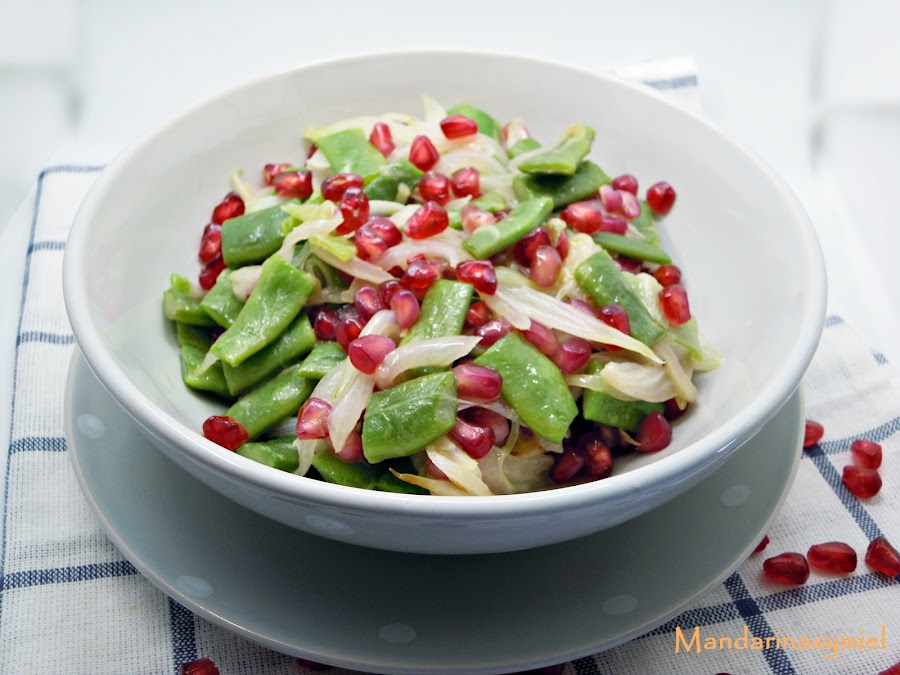 Judias verdes salteadas con granadas Sopa de ajo negro Flan de Coco y caramelo