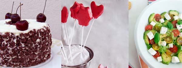 tarta selva negra // nubes caseras // ensalada de aguacates y albahaca