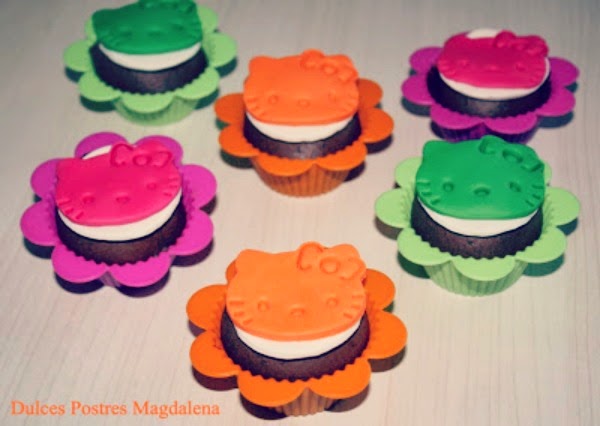 Chocolate , chocolate .. Ainss hay veces que me comería un reguimiento de chocolate , me lo pide el cuerpo , seguro que a vosotr@s os pasa igual -Confesad ¡¡¡ Pues ese problema se va acabar porque no pasa que haga estas fabulosas cupcakes de chocolate que Magdalena nos muestra en su rinconcito Dulces postres Magdalena. Un bizcochito jugoso decorado con su Kitty , icono de Magdalena :D Esas capsulitas de volantes me encantan Magdalena . Una lista de ingredientes fáciles de encontrar .. No hay excusas ninguna ..lápiz , papel , delantal y a hornear estas delicias .. UMMMMMMMM