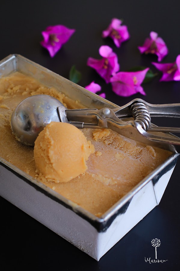Helado de pudding de vainilla Bizcocho albaricoques Flan de Berenjenas