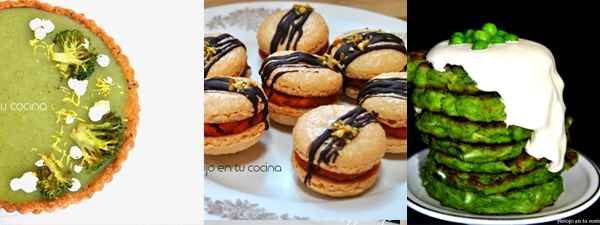 // tarta de brocoli y limón // macarons de sobrasada y miel // Tortitas de Guisantes //