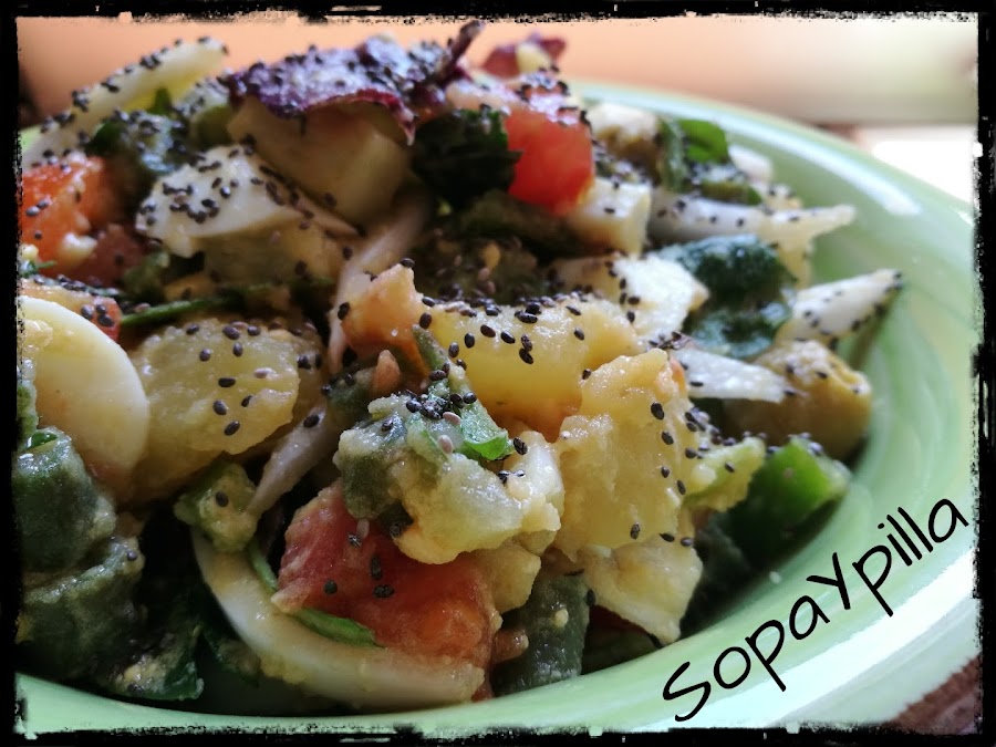 El nombre le va al pelo, siiiii porqué lleva de todo, en casa fué plato único...y que sana y rica está!! ideal para la dieta y los caloretes...un plato único (o no) de aúpa, que además se puede llevar perfectamente al trabajo, a la playa o al campo.