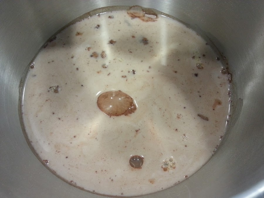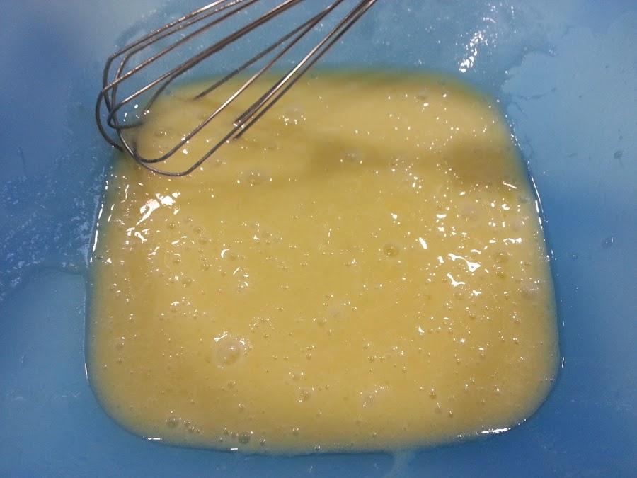 2. - Le agregamos la leche y el sirope y batimos con unas varillas, a mano o con una batidora.