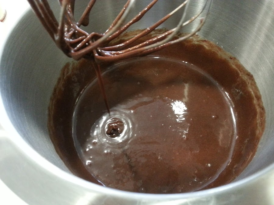 4. - Con la batidora, vamos incorporando poco a poco los huevos batidos a la mezcla de cacao.