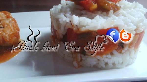 1.- Sobre un plato colocamos un aro de cocina, lo rellenamos con una capa de aroz, una de pisto y otra de arroz. Por último colocamos 2 cucharas de pisto sobre el arroz, decoramos con una rama de canela.