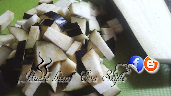 2.- Lavamos las verduras, las secamos y picamos en dados pequeños. La berenjena la cortamos aparte y la ponemos en agua y sal 30 minutos, para quitarle el amargor.