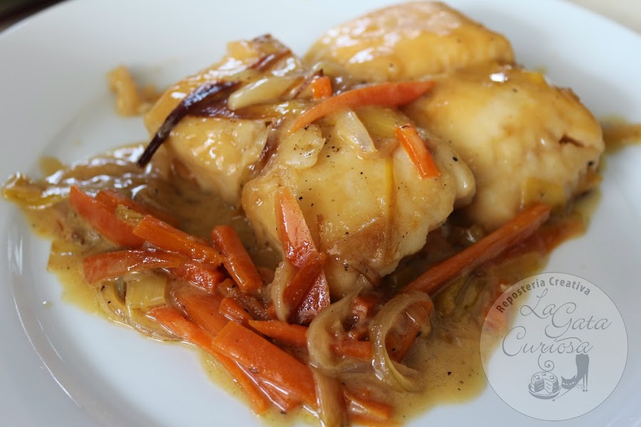 Empecé a dar vueltas por la cocina para ver de lo que disponía y me encontré con una botella de sidra sobrante de las navidades pasadas a la que decidí dar salida inmediatamente, la verdad es que no esperaba que el resultado fuese tan bueno, pero ha quedado un plato fabuloso.