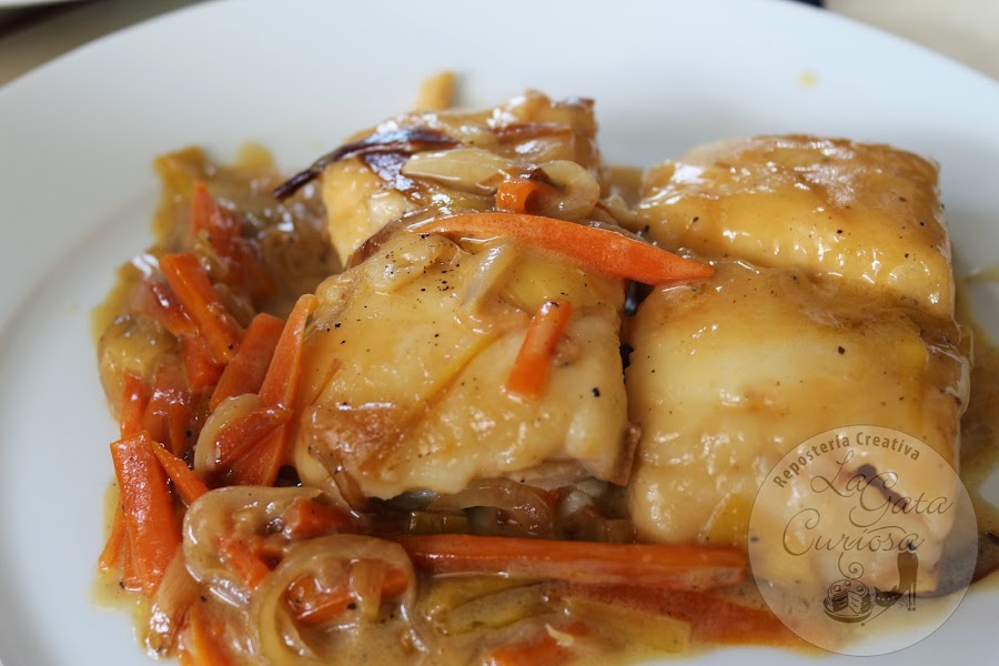 Vamos pasando el pescado una vez listo a una cazuela de fondo amplio para que se pueda poner todo el pescado sin que se amontone, cubrimos con la salsa con las verduras y dejamos cocer hasta que la salsa quede espesa.